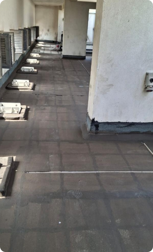 The substrate must be clean, free of dust, oil, paint, and loose debris. All cracks, joints, and surface defects must be repaired with a suitable polymer-modified mortar before the waterproofing slurry is applied.